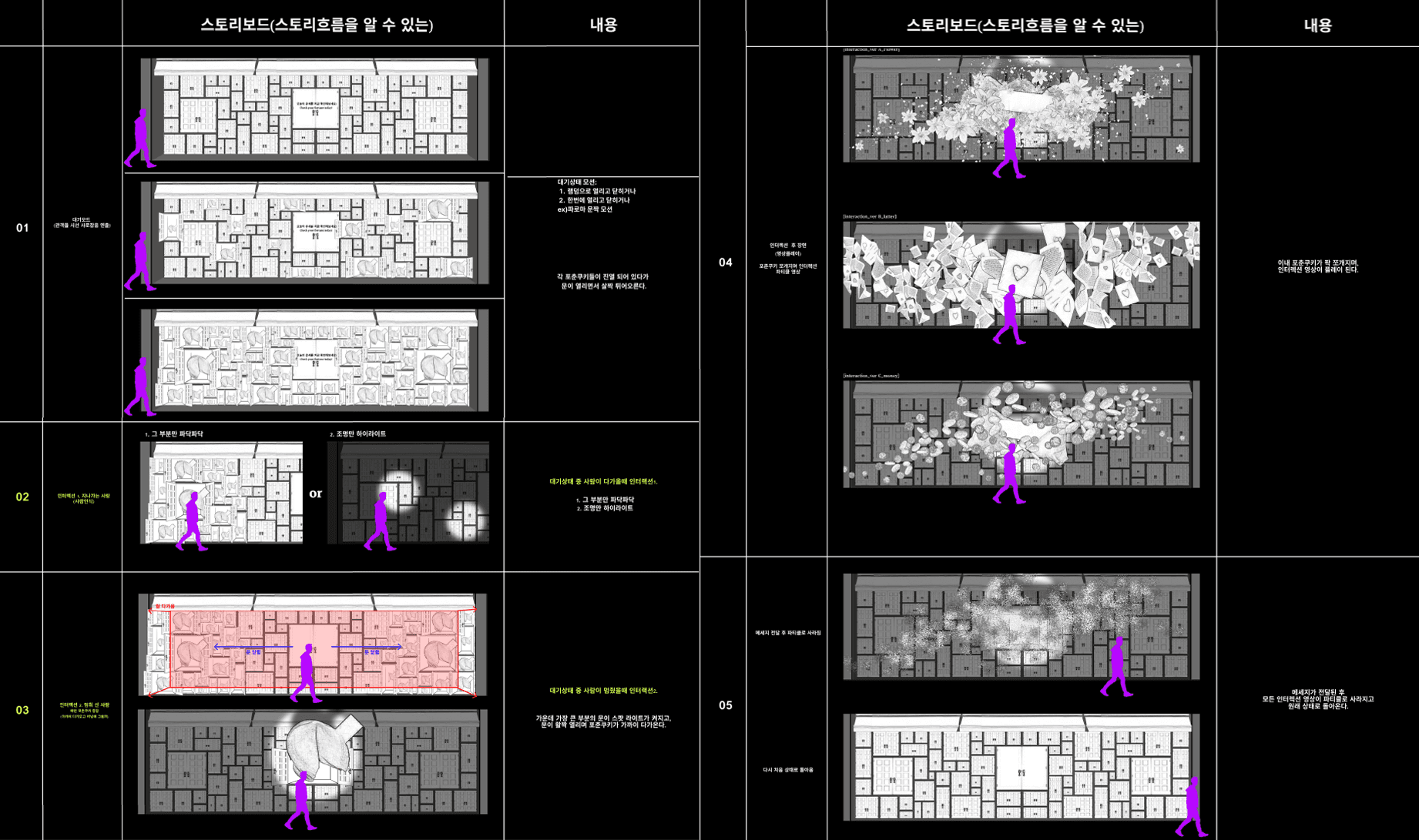 Considering the cultural characteristics of Korean audiences, we felt that interactions triggered by excessive actions or overt attention-seeking behaviours would be less effective. Instead, we focused on subtle events that occur naturally