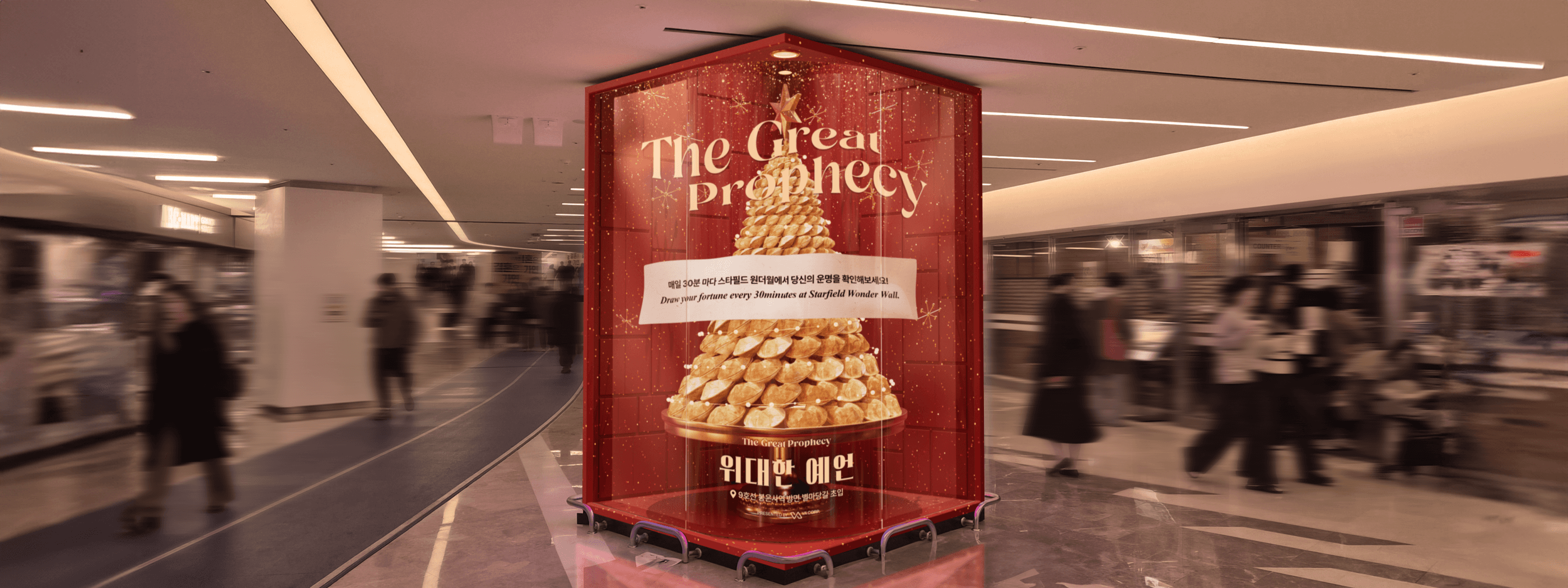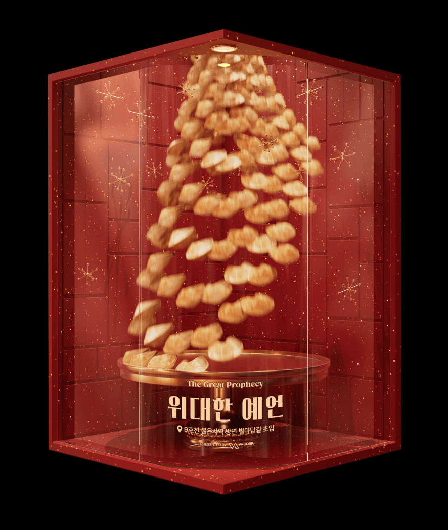 A Christmas edition of The Great Prophecy was produced and presented at COEX in Seoul, alongside an anamorphic advertising project developed for the venue’s column LED screens to promote the event.